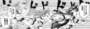 出遅れ最下位となるも、残り200m地点でキタハラに教わった足首をフルに使った走りで先頭を走るフジマサマーチの背後まで迫っていく。残り100m地点までフジマサマーチと一位を争うが、最後靴がもたず壊れ失速し2位に終わった。