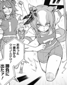 最大外からぶち抜いてきたオグリに対し「ずっと10人にマークされ続けてからの最大外!もう体力は残っていないだろう!?」と勝負を仕掛けるが、さらにペースを上げるという格の違いを見せつけられ敗れた。順位は不明。