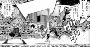 日本フェザー級王座防衛戦。真田の飛燕や燕返しに苦戦するが、十字ブロックやパンチを恐れない勇気で自身の距離に持ち込んでいく。それでも人体構造を把握しているゆえの真田の巧みな技術力に「キャンバスに手をつけば楽になれる」と思ってしまうほどに追い詰められる。5R目を迎えると特攻の覚悟を決め、リバーブロー→ガゼルパンチ→デンプシー・ロールの連携を決めるが、体力の限界で途中でデンプシー・ロールが止まってしまう。真田がとどめのフィニッシュを繰り出そうとするが、すでに限界を迎えており、放ち様そのまま崩れ落ちてTKO勝ちとなった。3R 2:13 TKO勝利。