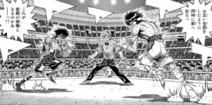 ウォーリーのロープを利用して宙に浮くなど人間離れした動きに翻弄され続け圧倒的力の差を見せつけられる。まったく触れない異次元の動きでKO寸前まで追い詰められるが、一歩の触れるだけにしか見えなかったボディブローが鴨川の鉄拳のごとき威力と正確性だったためウォーリーの体力を削り、足の自由を奪っていく。足を奪ったことで打ち合いに持ち込み、最後はコーナーに詰めデンプシー・ロールからのリバーブロー→右ストレートで沈め、セコンドからタオルが投げられたことでTKO勝ちとなる。8R 1:35 TKO勝利。