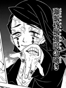 炭治郎、禰豆子、珠世とともに交戦。炭治郎にお札を付与しサポート。炭治郎が横水車で矢琶羽を討伐し、禰豆子が朱紗丸と戦ってる隙に珠世が発動した白日の魔香で無惨の名前を口にさせ、発動した無惨の呪いによって体内から無惨の細胞に殺させていった。