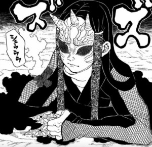 高い再生力で杏寿郎の攻撃をすべて回復して見せ、杏寿郎との力の差を思い知らせていく。杏寿郎の奥義、煉獄に対し破壊殺・滅式で応じ、胸を貫く致命傷を負わせるも杏寿郎に捕まえられ身動きが取れなくなる。杏寿郎に致命傷を負わせていくも、夜明けとなったのでとどめは刺せずに逃走していった。