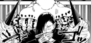 投射呪法による動きで翻弄していくが、脹相の赤鱗躍動で動体視力を高めながらの大量の血液と穿血のコンボに追い詰められる。生地に染み込んだ血液を凝固され足を奪われ、最後は穿血と見せかけた超新星をもろに食らい敗れた。