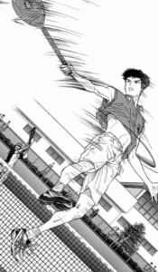 柿ノ木坂ジュニアテニストーナメントで喧嘩を売られ試合に。セルフジャッジによるイモリと故意にラケットを投げてくる汚いプレーに対し、顔面に跳ね上がるツイストサーブでお返し。利き腕ではない右手によるプレーにもかかわらず圧勝していった。