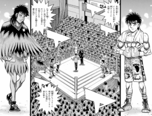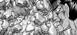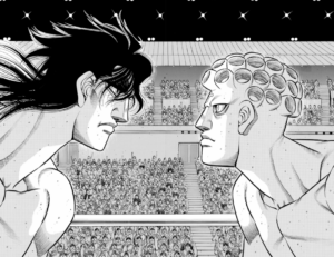 WBC世界ジュニアミドル級タイトルマッチ。ホークの変則的すぎるスタイルに苦戦するも、減量によるスタミナ不足で「温存」という選択肢がないゆえのハイペースで互角の闘いを繰り広げる。スタミナ切れとなって以降はホークに圧倒されるが、鴨川ジムの仲間たちに支えられてることを思い出し、なんとか食らいつく。「今までの苦しさはすべてホークのせい」と思い出しブチギレたことで、内なる野性が解き放たれ、鴨川に教え込まれた科学と野性が融合した最強のボクサーに至る。ホークお得意のスウェーバックにも躱した先に渾身の一撃を叩き込み、ダウンからホークが立ち上がるも、渾身の右を叩き込みKO勝利を収めた。WBC世界ジュニアミドル王者となる。