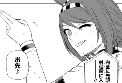 【全日本ウマ娘カップ 2着】 途中、先頭に立つがフェイスノーモアに抜かれ2着でゴールした。 【東京大賞典 1着】 5番手でスタートし、途中トリックスターであるロマンスバブリーにペースを崩され、ペース配分無視で一気に仕掛けようとするが、檮原の声で冷... -