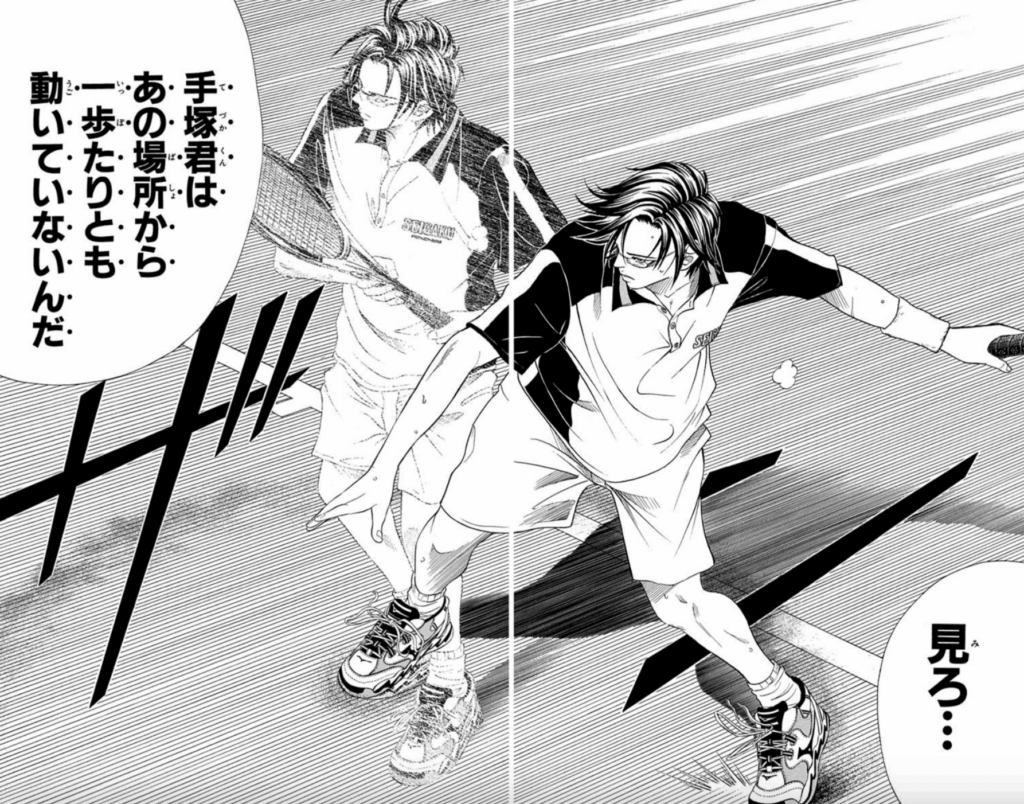 【VS大和祐大 勝利】 部内戦。詳細は不明だが勝利している。 【VS杉下 勝利】 部内戦。利き腕ではない右手で試合するも6-2で勝利。 【VS武居 不明】 部内戦。手塚が利き腕ではない右手でプレーしていたことを知ると武居がブチギレ、ラケットで左手を殴られ... -