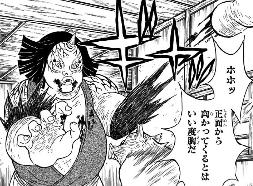 【VS角鬼 勝利】 喰い裂きで首を両断し勝利。 【VS竈門炭治郎 敗北】 禰豆子に襲いかかろうとしたところ止められ交戦。ステゴロでの戦いとなり、人間離れした柔軟性によるトリッキーな攻撃で追い詰めるが、炭治郎の石頭による頭突きで脳震盪となり戦闘不能... -