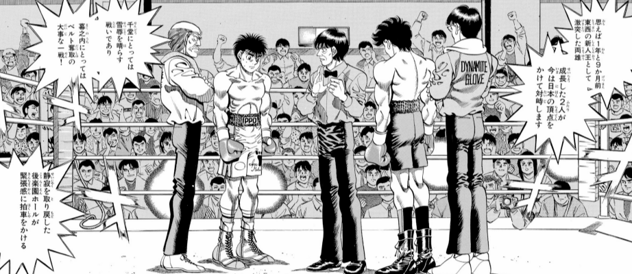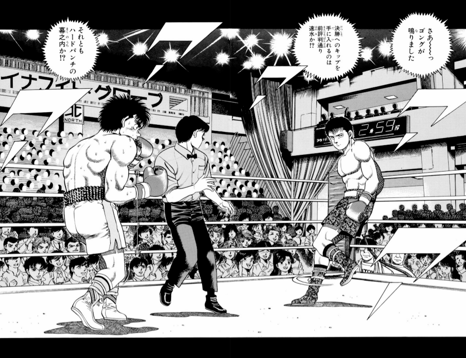 【VS吉田満男】 東日本新人王1回戦の試合。ジャブとクリンチでリズムを狂わせ、判定勝ちで勝利を収める。 【VS幕之内一歩】 東日本新人王2回戦の試合。得意の相手のペースを乱す戦術で優位に進めるが、追い詰めたことでKO意欲に駆られ、KOを狙いにいったと... -